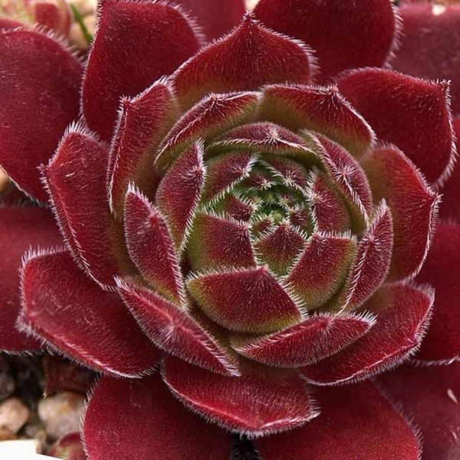 Молодило Ohio Burgundy - травянистый, вечнозеленый, почвопокровный многолетник. Образует живописные группы из розеток. Высота до 10-15 см., ширина до 30 см. Листочки сочные, меняют цвет от насыщенно красных до розовых в зависимости от сезона и освещения. На фото реальный цвет растения снятого в мае. Цветы розовые, мелкие на вертикальных цветоносах. Наиболее декоративно с апреля по ноябрь.