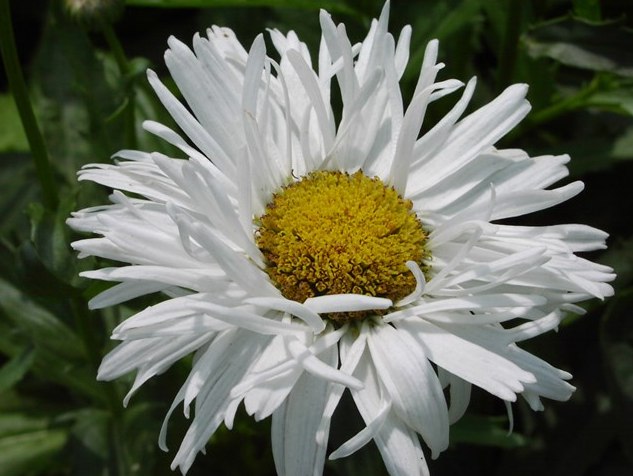 Ромашка Christine Hagemann - многолетнее травянистое растение 70-90 см высоты. Корзинки 8-10 см диаметром, махровые, одиночные, верхушечные. Краевые язычковые цветки длинные, линейные, белые. Центральный диск почти не заметен.