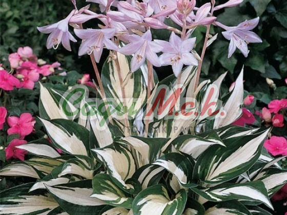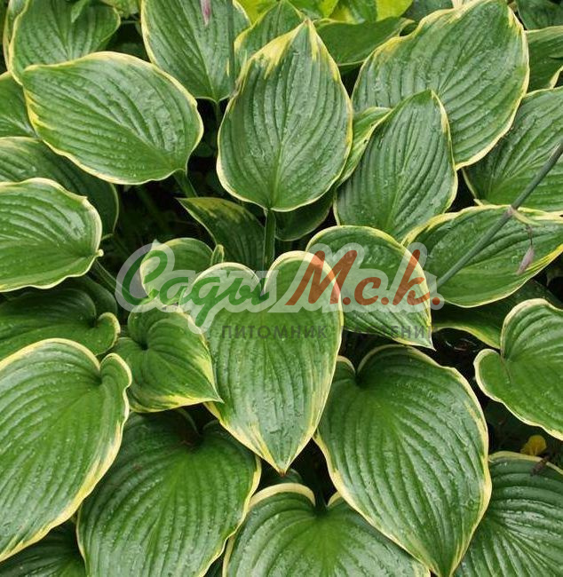 Хоста Аnn Kulра – многолетнее декоративное растение, образующее ярусный куст высотой до 50 см. Листовые пластины достаточно плотные, шелковистые, со слегка волнистым краем, небольшими выемками и сильно выраженным жилкованием. Они образуется весьма декоративный, плотный и компактный куст, который в середине лета зацветает, выбрасывая цветоносы с небольшими, лавандового цвета колокольчиками. Но заметным растение становится благодаря цвету своих декоративных листьев. Сердцевидные, голубовато-зеленые с золотисто-кремовым центром и зеленым краем – такую красивую окраску невозможно не заметить. Со временем светло-кремовый центр становится шире, а вот окантовка листа, наоборот, сужается. Гибридный сорт хорошо себя чувствует и в тени, и на солнце, предпочитая купаться только в утренних его лучах. Он может длительное время расти на одном месте. Но для сохранения расположенной по центру полосы его желательно часто делить.