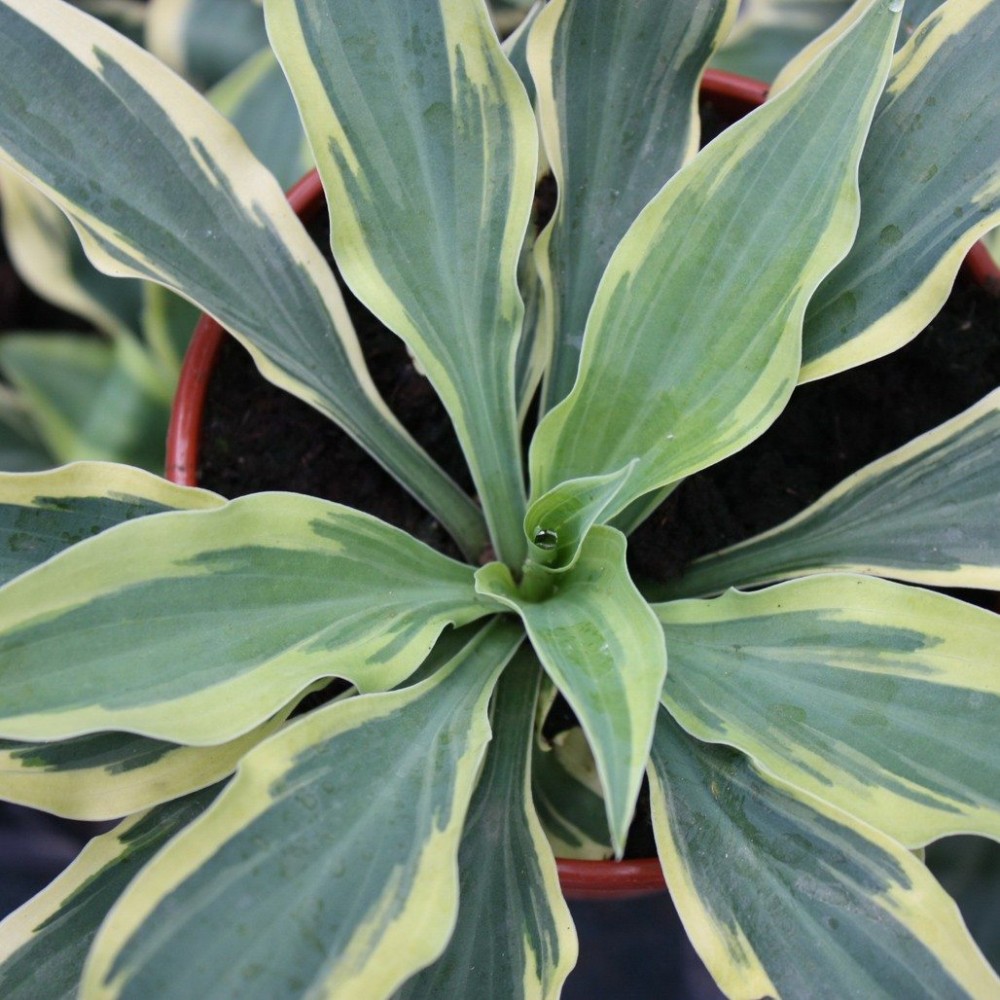 Хоста Wolverine - компактная хоста с листьями сине-зеленого переходящий в зеленый цвета. Кайма широкая, светло-желтая. 40х50 см. Листья удлиненные, ланцетовидные с круглым основанием, слегка волнистые. Цветы лавандовые, без запаха. Сорт предпочитает полутень, но в случае необходимости достаточно хорошо переносит солнце.