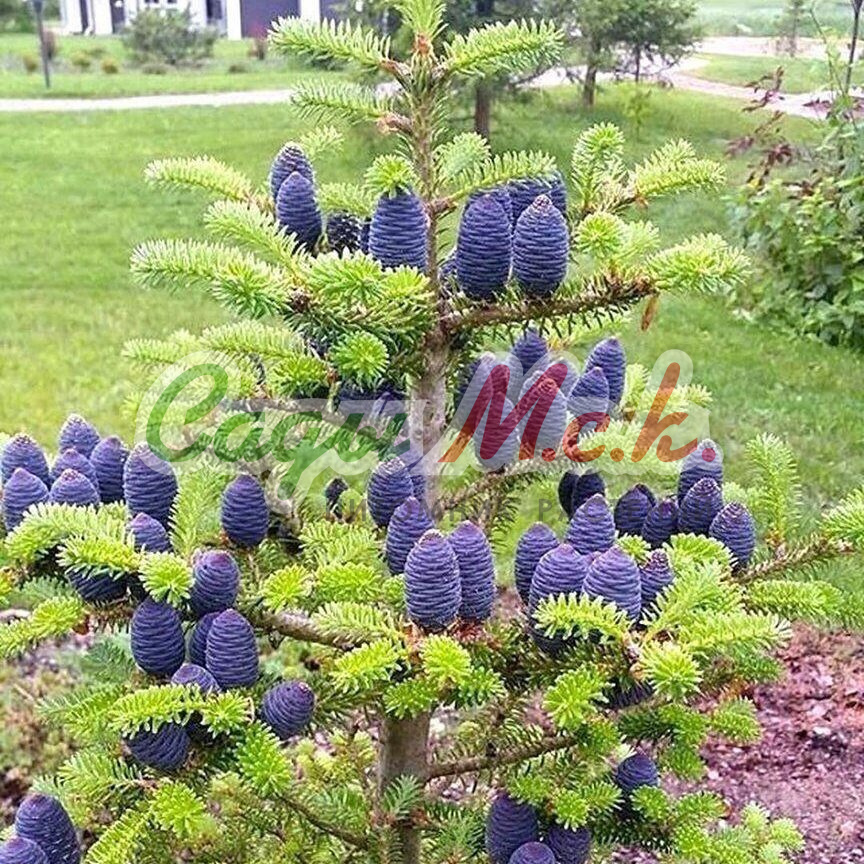 Плоды корейской пихты – шишки пурпурно-фиолетового цвета. Их длина около 4…8 см, диаметр – до 2 см. посажены на ветки вертикально на короткую ножку, концентрируются в верхней частями дерева и на молодых концах веток.